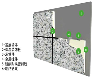 在工廠加工成型,由保溫芯板、裝飾面板及膠粘材料復合而成,集保溫、裝飾為一體的板材,必要時就設(shè)置底襯板。