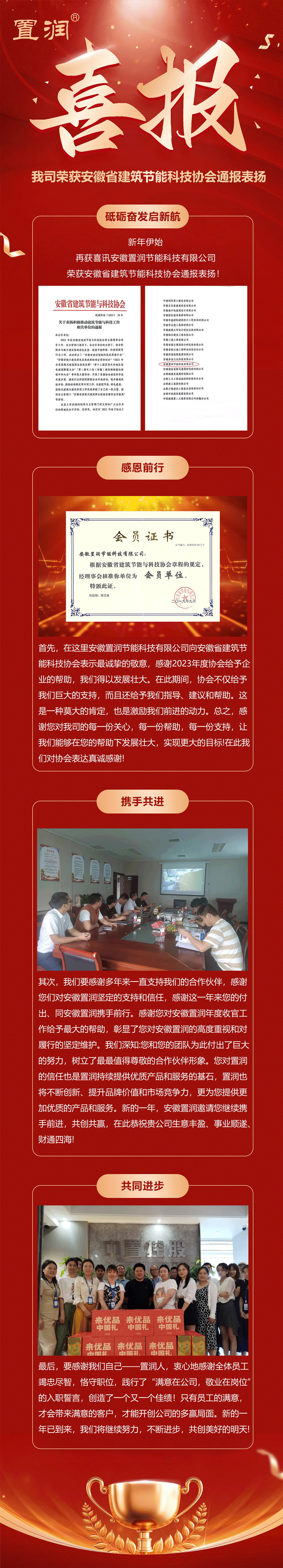 喜訊︱安徽置潤節(jié)能科技有限公司榮獲安徽省建筑節(jié)能科技協(xié)會通報表揚